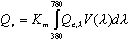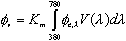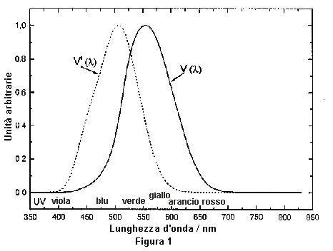 dove Km è una costante di proporzionalità pari a 683 lm/W e V(λ) è la funzione di risposta spettrale dell'occhio umano in regime fotopico, cioè quando l'occhio è adattato a livelli di alta luminanza.